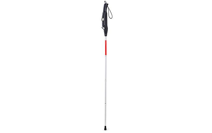 电子导盲杖配有2个超声波感应器,能够感应到前面2米面部高度处的阻碍物,并利用震动手柄告知用户。该导盲杖总重量也控制在300克以内,与传动系统导盲杖基本上差不多。